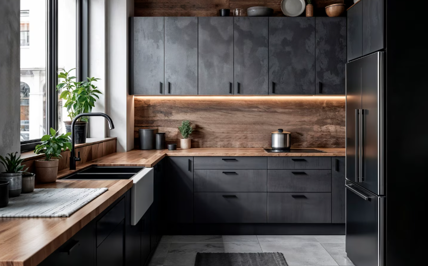 А если хочется немного смелости – пожалуйста. Производители не боятся использовать бетон, металл, стекло, камень. Подчеркнутые текстуры, акцентные фартуки, нестандартные решения – всё это вписывается в основу, где главное – разумная гармония. Да и техники в такой кухне не видно. Она спрятана, встроена, работает как надо, не нарушая общей картины. И даже небольшую площадь удаётся превратить в уютную, функциональную, эстетичную зону.