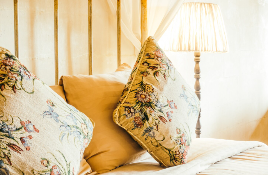 - спальня: наволочки, покрывала, мягкие пледы с растительным узором или однотонной стежкой;